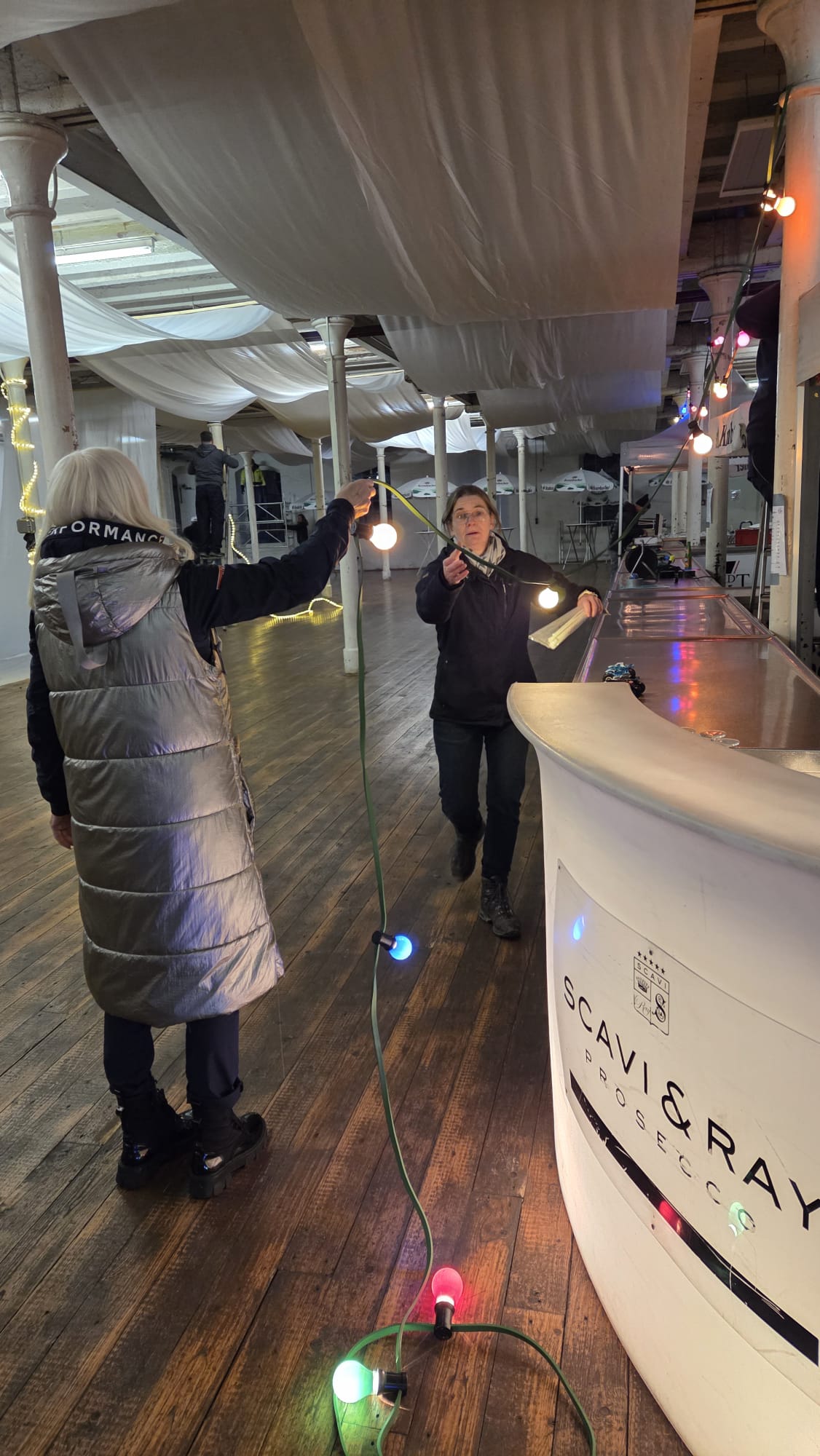 Auch unser bewährtes Thekenteam war wieder im Einsatz und versorgte die Gäste mit allem, was das Après-Ski-Herz begehrt. Besonders beliebt waren die Klassiker aus unserer Aperol-Maschine sowie – erstmals im Angebot – der Flying Hirsch, ein Getränk, das unter Skifahrern und Après‑Ski-Fans längst Kultstatus hat.